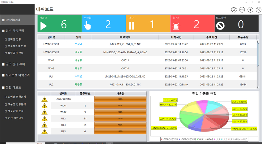 PDF 자료받기설비가동관리 시스템은 설비로 부터 수집된 모니터링 데이터를 분석하여 가용시간 대비 가공비를 산출하여 매출에 설비가 차지하는 범위를 분석하고 확인할수 있습니다.